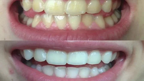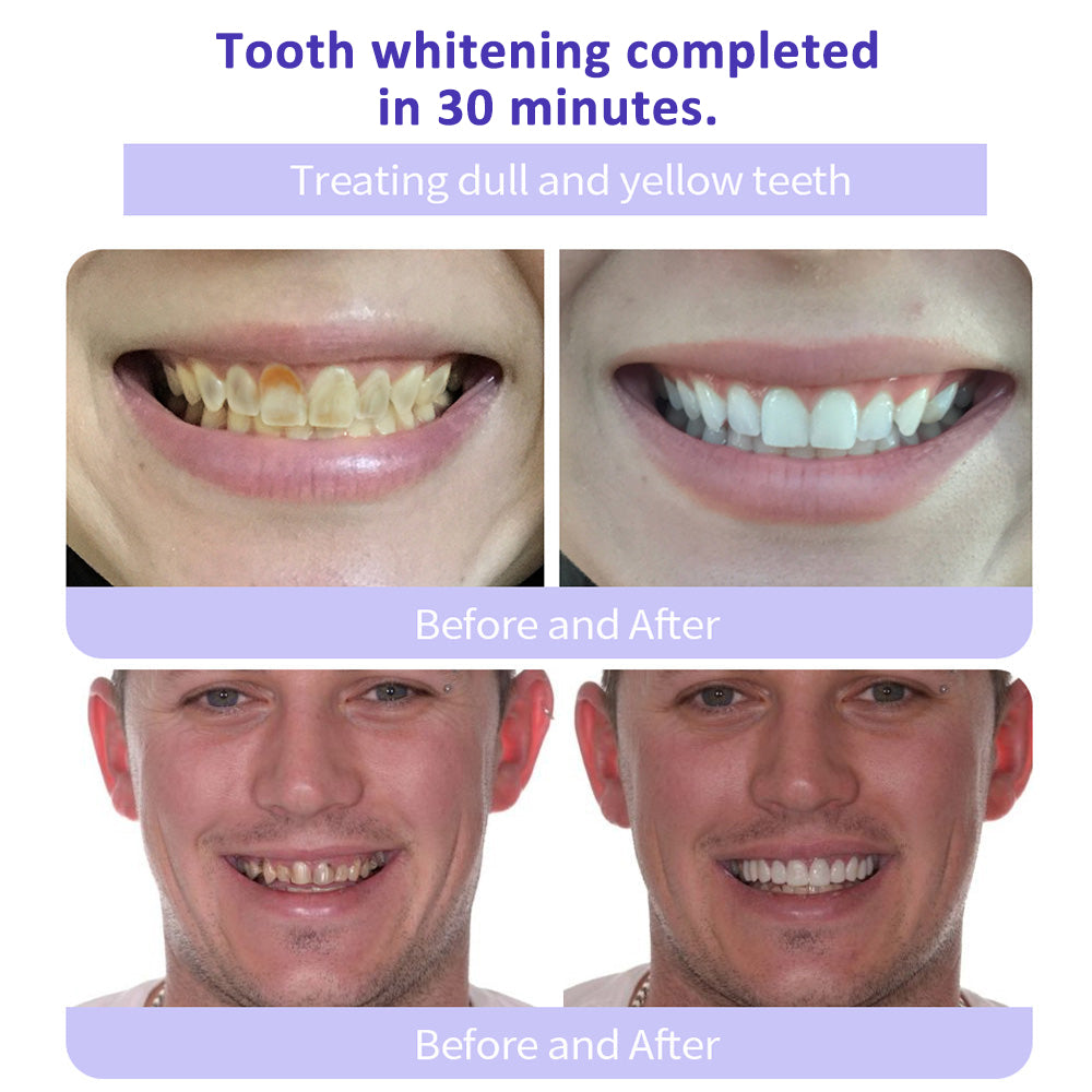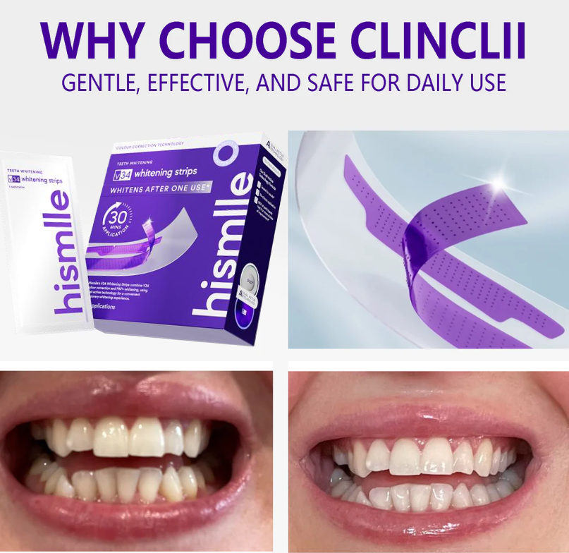 Tired of hiding your smile because of yellowish teeth? Skavix V36 Whitening Strips are here to change the game!Look at these amazing âbefore & afterâ shotsâno hype, just real results. The purple - hued strips work their color - correcting magic, targeting those stubborn yellow tones to reveal a brighter, more confident smile.Whether itâs coffee stains or daily discoloration holding you back, our strips deliver visible whitening in just 30 minutes.